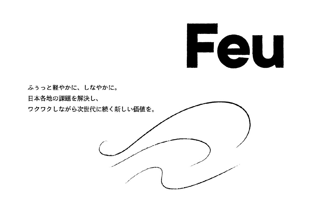 「Feu」は、地域にある課題をクリエイティブ×企画のチカラで解決し、地域の経済の循環を生み出すことを目的とした会社です。各地にある悩みを「ふうっ」と吹き飛ばし、そこに新たな価値を生み出すことを目指し、また地域に元々存在する情熱や資産や魅力の種を「ふうっ」と息を吹きかけ、より強く大きくしていきたい想いを込めています。(Feu=フランス語で火)