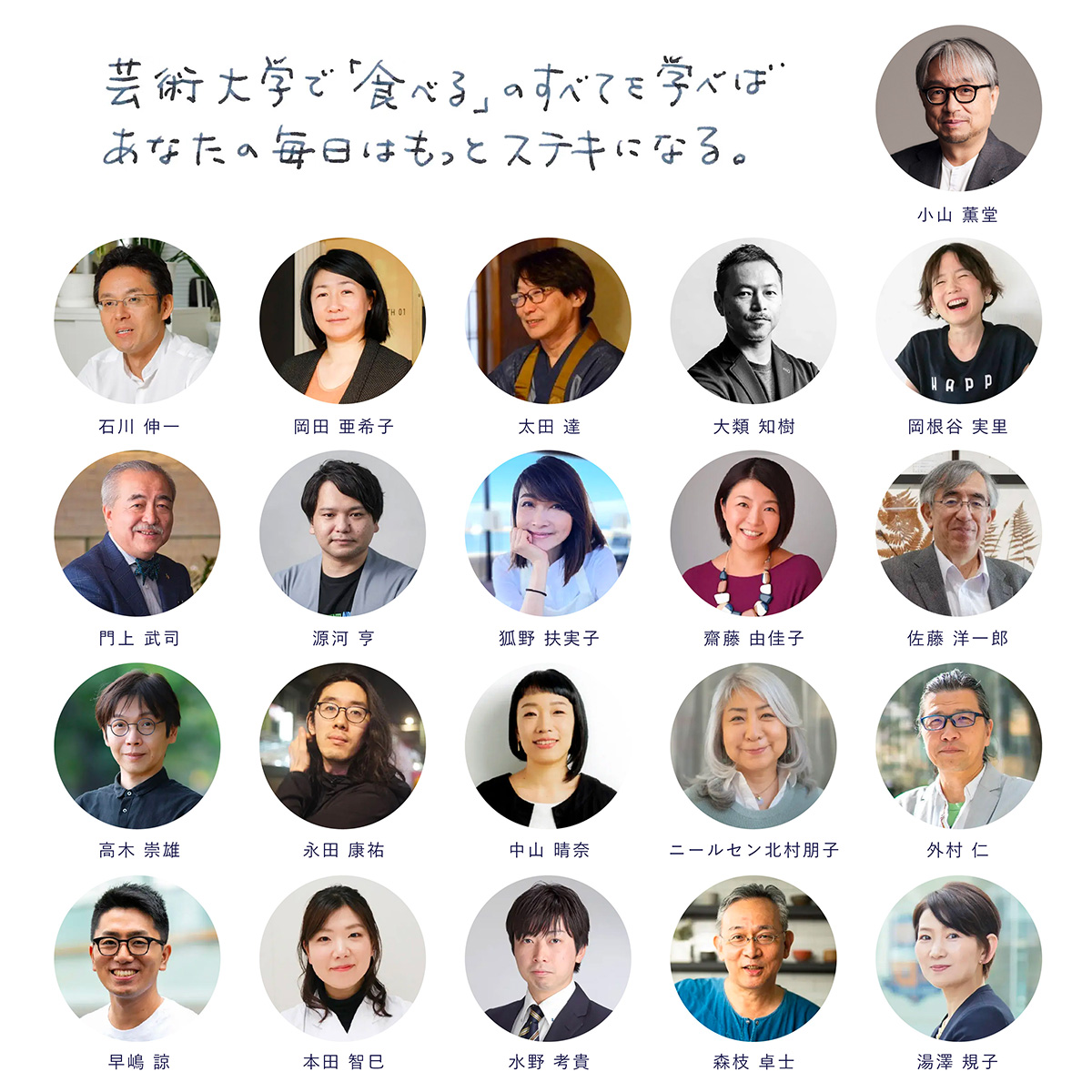 講師陣は、科学、ツーリズム、メディア、地方創生、フードテック、ビジネス、現代美術など、幅広い分野で活躍している食に関するスペシャリストが講師として集結。