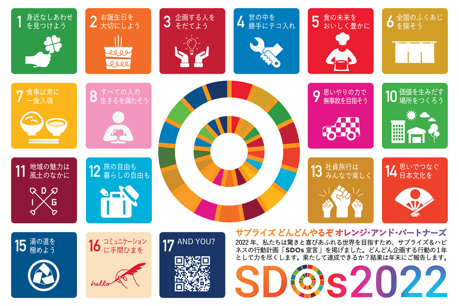 新年の目標を「SDOs=サプライズ、どんどんやるぞ、オレンジ・アンド・パートナーズ」として、17のミッションを掲げました。