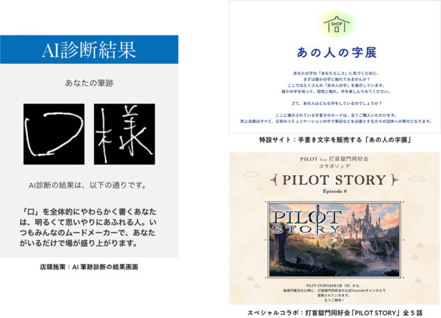 2022年の施策では、文具店店頭什器のメインコンテンツとして自分の字からAIが性格を診断してくれるAI筆跡診断を行い、特設サイトでは著名人の手書きメッセージを販売するチャリティ企画を行いました。