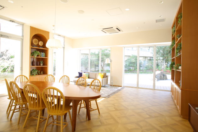 レタールームは、病気と向き合う患者さんや患者さんと向き合うご家族が自身の思いを手紙に託し、したためるためのお部屋です。患者さんのベッドサイドに届く手紙や、退院する日の自分に宛てた未来への手紙など、それぞれの気持ちに合わせてお手紙を書くことができるようにしました。レタールームの隣には、「病院の中に家のリビングを」との思いで用意した「シェアルーム」があります。一人の時間、家族だけの時間を過ごしにくい病院の中で、ひとときでもお家の中で過ごすような安心感を得られるように、予約制で使用できる談話室としての役割を果たしています。患者さんが恋人と誕生日を祝ったり、家族と談笑したり…さまざまな用途で使っていただいています。