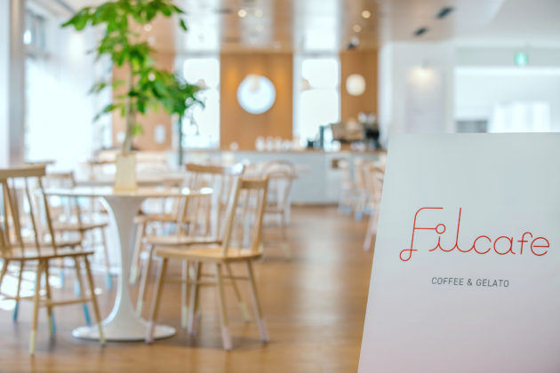 病院での日々に新たな刺激や楽しみを加えられるように、「病院のなかに街の賑わいを」もたらすカフェをつくりました。熊本市内で評判のロースターによるスペシャリティコーヒーと、毎日でも通いたくなる豊富なフレーバーを用意したジェラートを用意し、車椅子の患者さんでも気軽に立ち寄れるやさしい空間を用意。