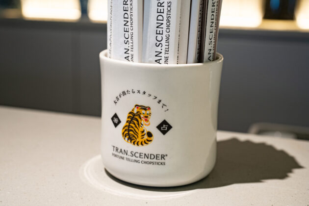 ラウンジの割り箸は、袋を開けると運勢が書いてある「占い箸」。