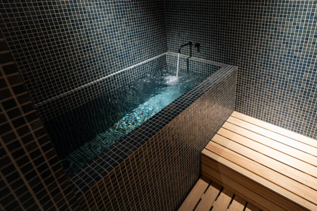 まず、1Fは旅の疲れを癒す、サウナと水風呂を備えた浴室に。