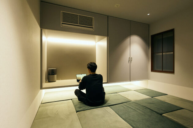 3Fはベッドルーム。壁面には、クッションが敷き詰められた部屋へ繋がる「隠し扉」も。ワークスペースとして、大人数での宿泊の際は布団を敷いて寝室として、お子様のプレイルームとしてもご利用いただけます。