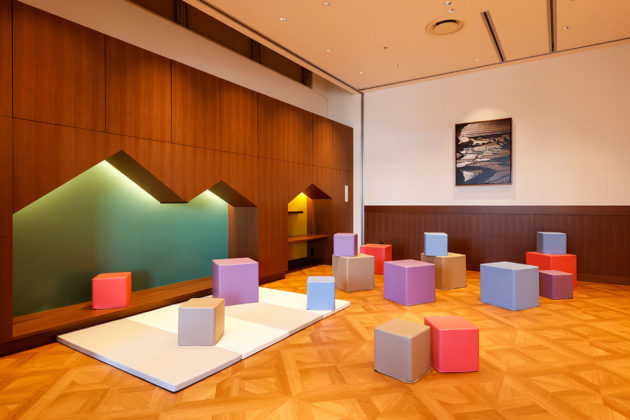 竹下製菓さんはアイスクリームでお子さんに笑顔を届ける会社です。そこでこのレストランもママ達が安心してお子様を連れてこられる空間にしていきたいと考えました。ママ友や親子3世代でいらして頂いてもお子様を遊ばせながらゆっくりと過ごして頂けるキッズルームをご用意しています。また、ランチにはアイスクリームの食べ放題もご用意。お子様はもちろん、大人でもちょっと幸せになる竹下製菓さんならではのサービスもご用意しています。
